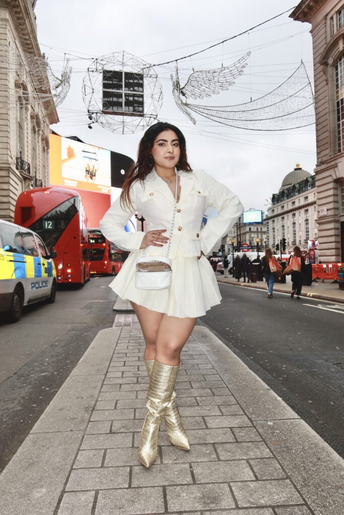 Another important chapter in her journey has been her growing presence in the fashion and cultural scene in London. Being invited to London Fashion Week was not simply a moment of glamour but a firsthand look at how global creative ecosystems operate. At House of Kind London she experienced how fashion can support community upliftment. At Pierre Garroudi’s showcase she witnessed the world of experimental couture and the artistic thinking behind it. These experiences expanded her understanding of the international creative landscape and influenced the way she approaches visual storytelling.
